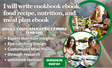 I will write and design cookbook recipes ebooks, recipes book, meal plan, and nutrition